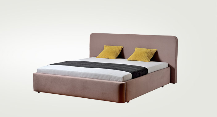Moderná čalúnená posteľ príjemných oblých tvarov s mäkkým čalúnením a úložným priestorom. Posteľ sa dodáva s pevným lamelovým roštom, alebo na vyžiadanie s polohovateľným roštom.