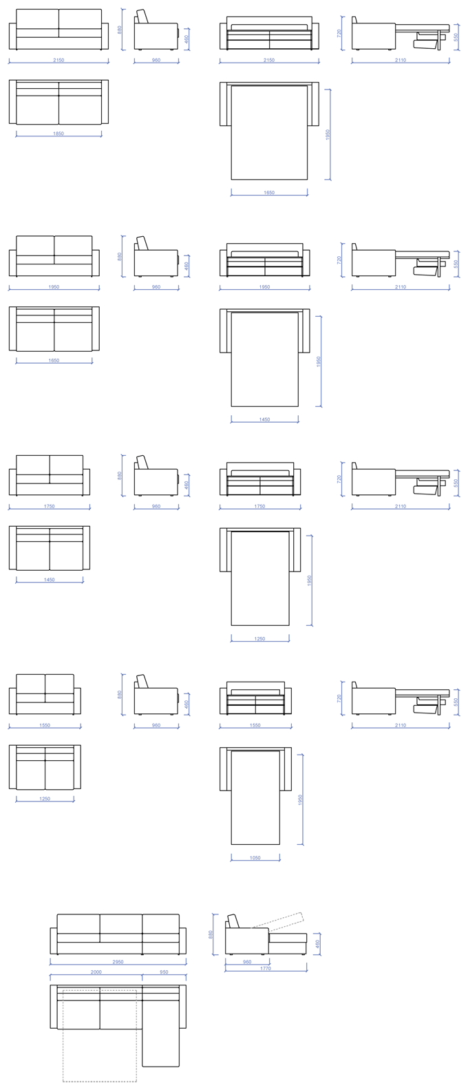 Praktický, tvarovo jednoduchý 2-sed, ľahko rozložiteľný na 2-lôžko s malým úložným priestorom. Uplatní sa v malých aj väčších bytoch, v detských izbách, ale aj v komerčných priestoroch.