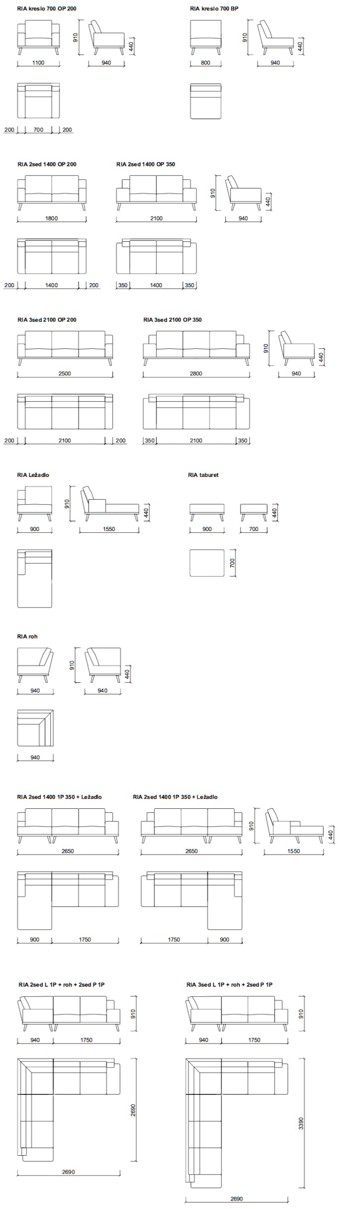 napr. samostatný dvojsed alebo trojsed, rohovú zostavu, alebo zostavu s ležadlom.