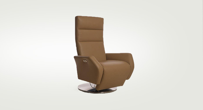 Relaxačné polohovacie kreslo na otočnej kovovej podnoži so samostatným polohovaním opierky nôh a chrbtu. Táto funkcia umožňuje dosiahnuť maximálne pohodlie pri hľadaní vhodnej relaxačnej polohy. Zmena polohy zo základného sedu sa vykonáva elektricky, úplne jednoducho stlačením gombíka na pravej strane kresla.