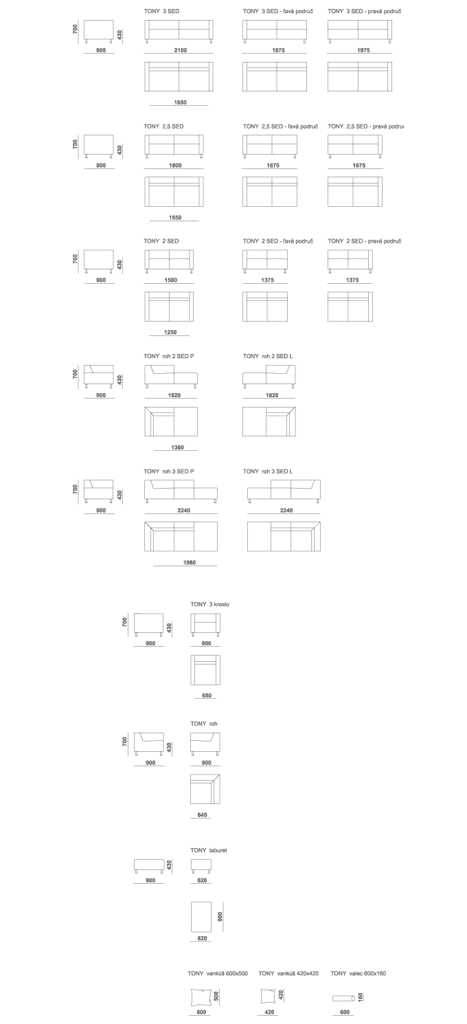 Variabilná sedacia súprava určená do bytov aj spoločenských priestorov. Základná zostava prvkov vrátane rohového umožňuje zákazníkovi vytvoriť si sedenie podľa vlastnej potreby, estetického cítenia a priestorových možností.